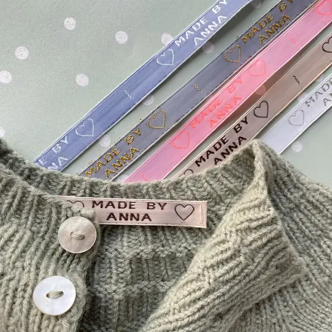 Con las cintas personalizadas es fácil y asequible crear etiquetas de tela para sus proyectos creativos. No importa si cose, teje o hace ganchillo: es una sensación muy satisfactoria poder etiquetar la tarea finalizada. Añadir una cinta personalizada a sus creaciones es como poner una tarjeta de visita en su proyecto, sobre todo si va a regalar prendas, bolsos u otros accesorios a sus familiares y amistades, ya que les recordará quién ha dedicado horas a elaborar ese regalo.