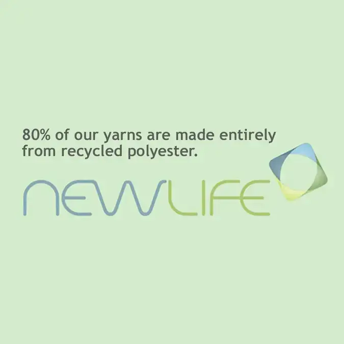 - Alrededor del 80% de los hilos son poliéster reciclado.